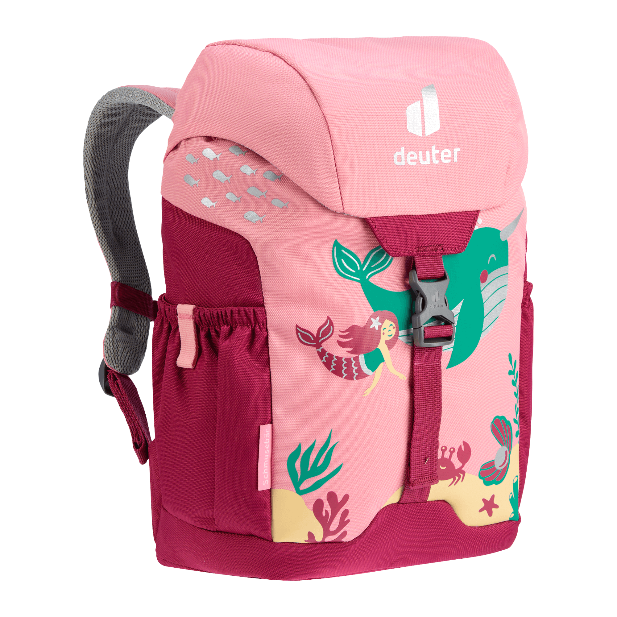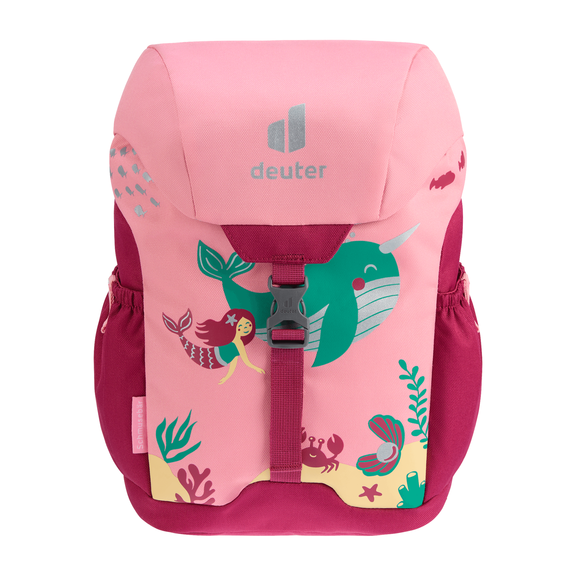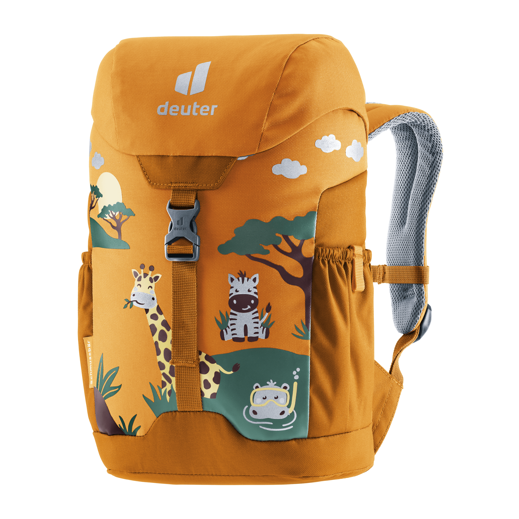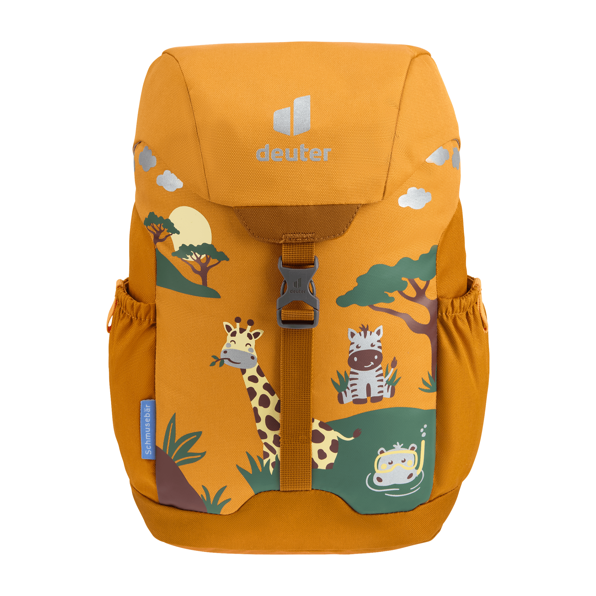 The Schmusebar is a classic among children's backpacks. With just the one clip and a child-friendly drawstring on the main compartment it is easy to use. In addition, it protects little ones on the way to kindergarten thanks to the additional reflective print. The pocket in the lid or the elasticated side pockets offer additional storage space for girls' and boys' special treasures. The Schmuse comes in three colourful options: In blue, grey and magenta with bright patterns. Thanks to the height-adjustable chest strap, the straps remain firmly fixed on the shoulders, even during the wildest of adventures.