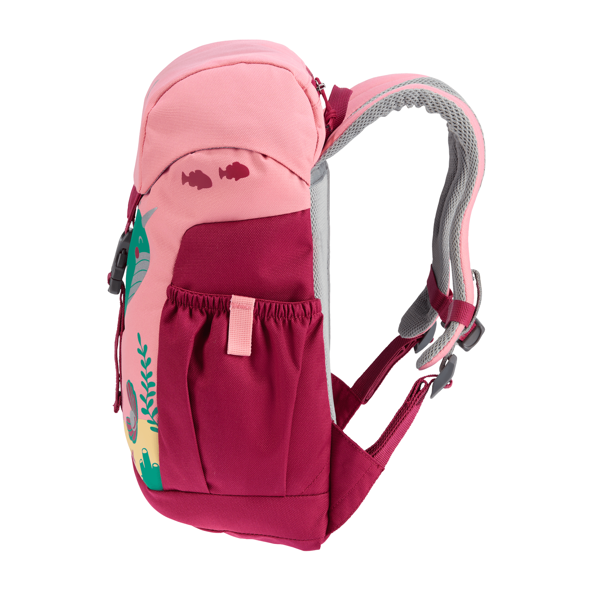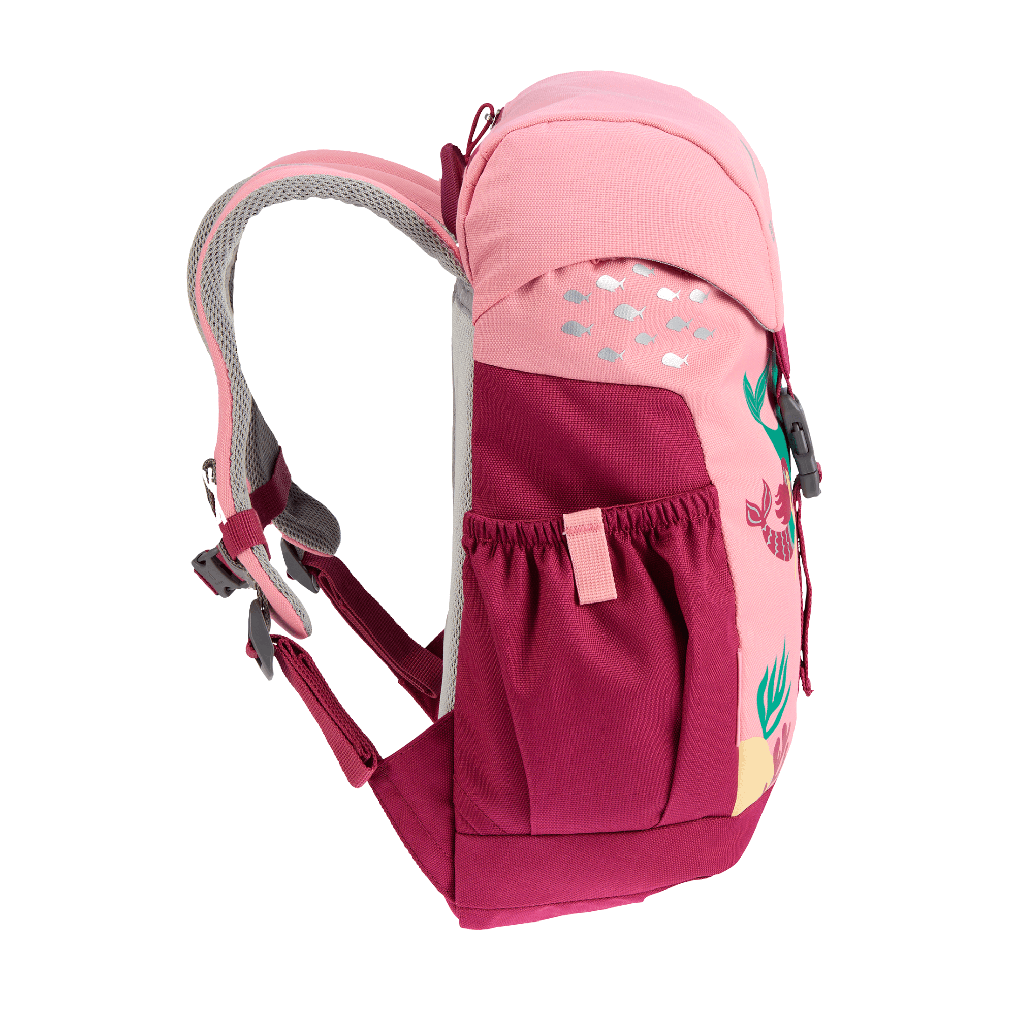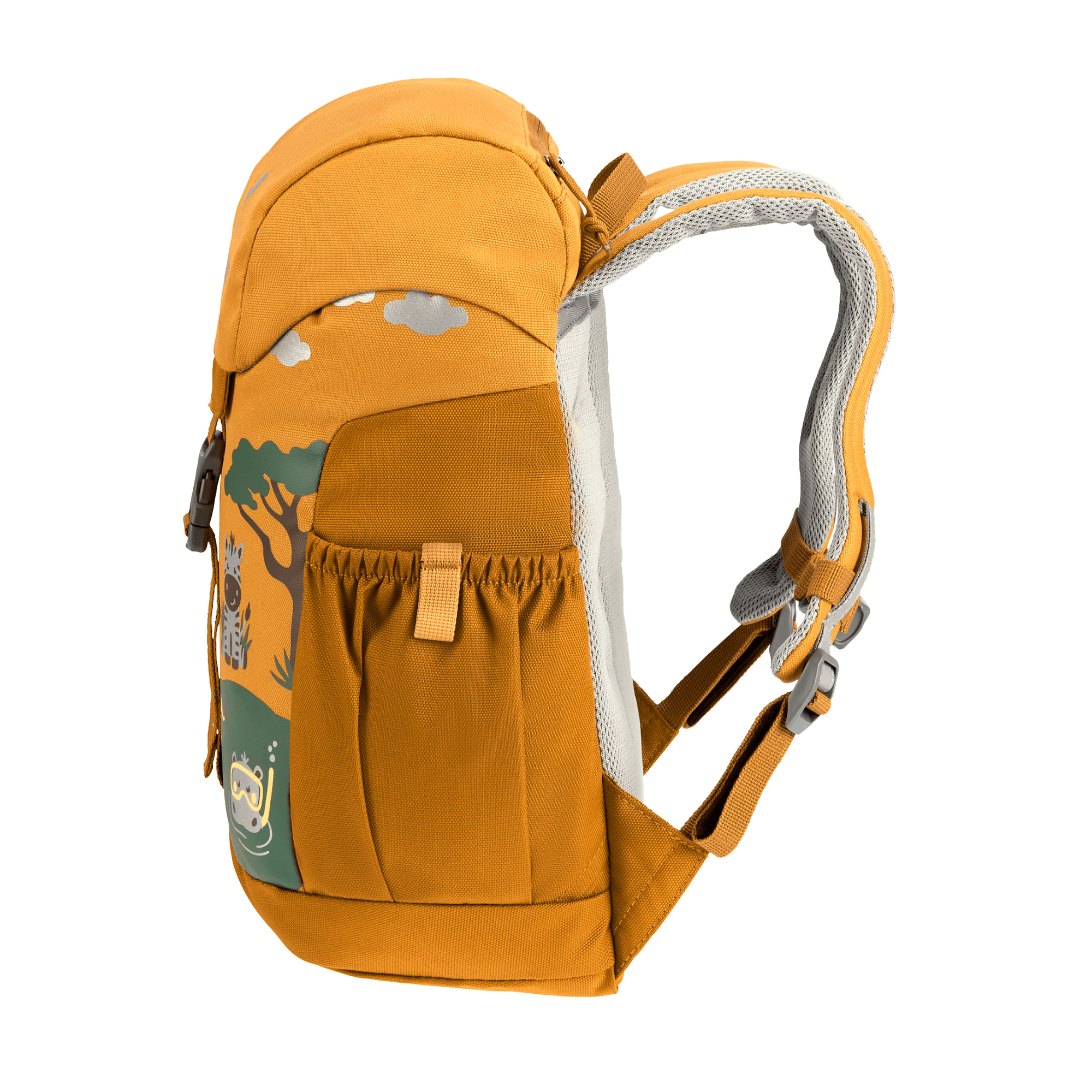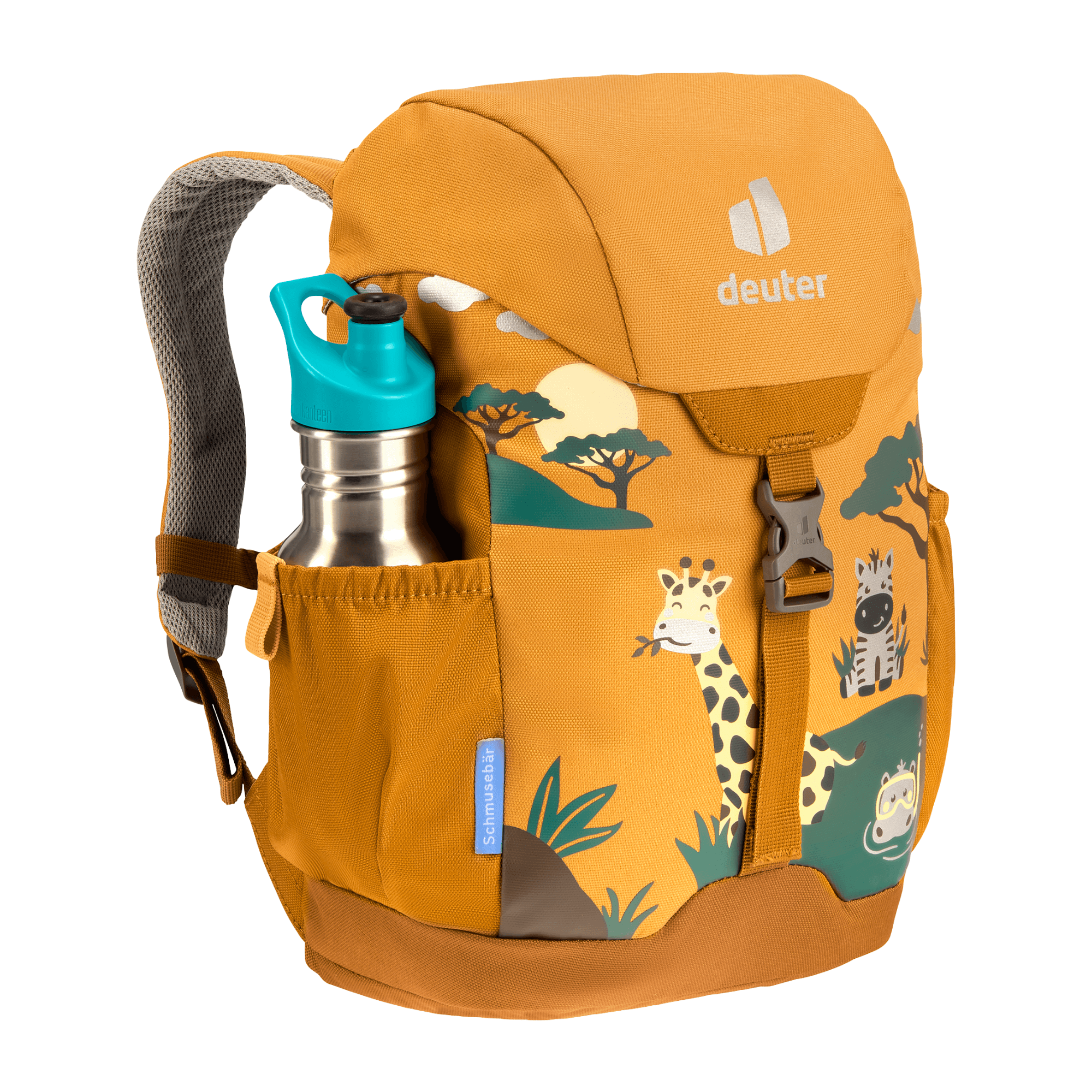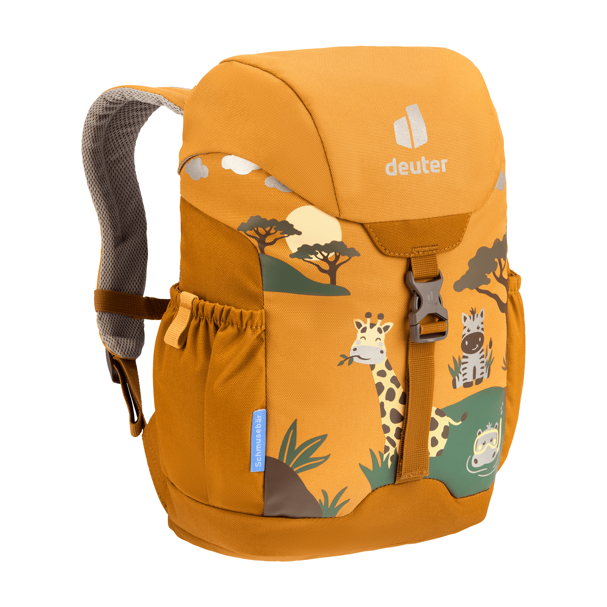 The Schmusebar is a classic among children's backpacks. With just the one clip and a child-friendly drawstring on the main compartment it is easy to use. In addition, it protects little ones on the way to kindergarten thanks to the additional reflective print. The pocket in the lid or the elasticated side pockets offer additional storage space for girls' and boys' special treasures. The Schmuse comes in three colourful options: In blue, grey and magenta with bright patterns. Thanks to the height-adjustable chest strap, the straps remain firmly fixed on the shoulders, even during the wildest of adventures.