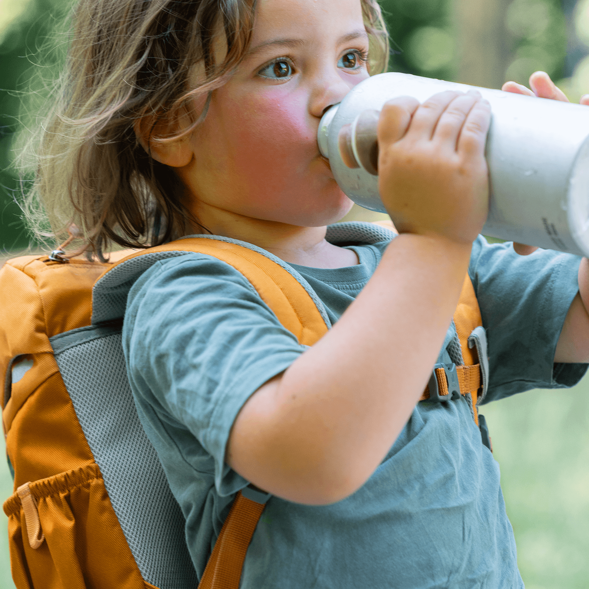 - S-shaped shoulder straps wrap around children's shoulders with Soft-Edge finish