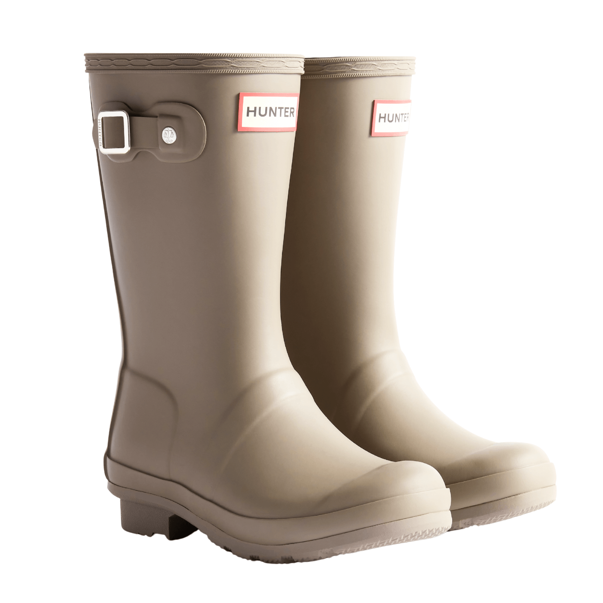 A mini version of the iconic Hunter Original Tall Boot, the Big Kids Original Kids Wellington is a dream for junior explorers. This classic waterproof boot is handcrafted from natural rubber. Designed for adventures, these specialised kids wellies are highly resistant to wear and abrasion with a 100% recycled polyester lining for comfort. Reflective patches and the Hunter Original tread offer added safety so you can be confident letting them take on the elements whatever the weather.