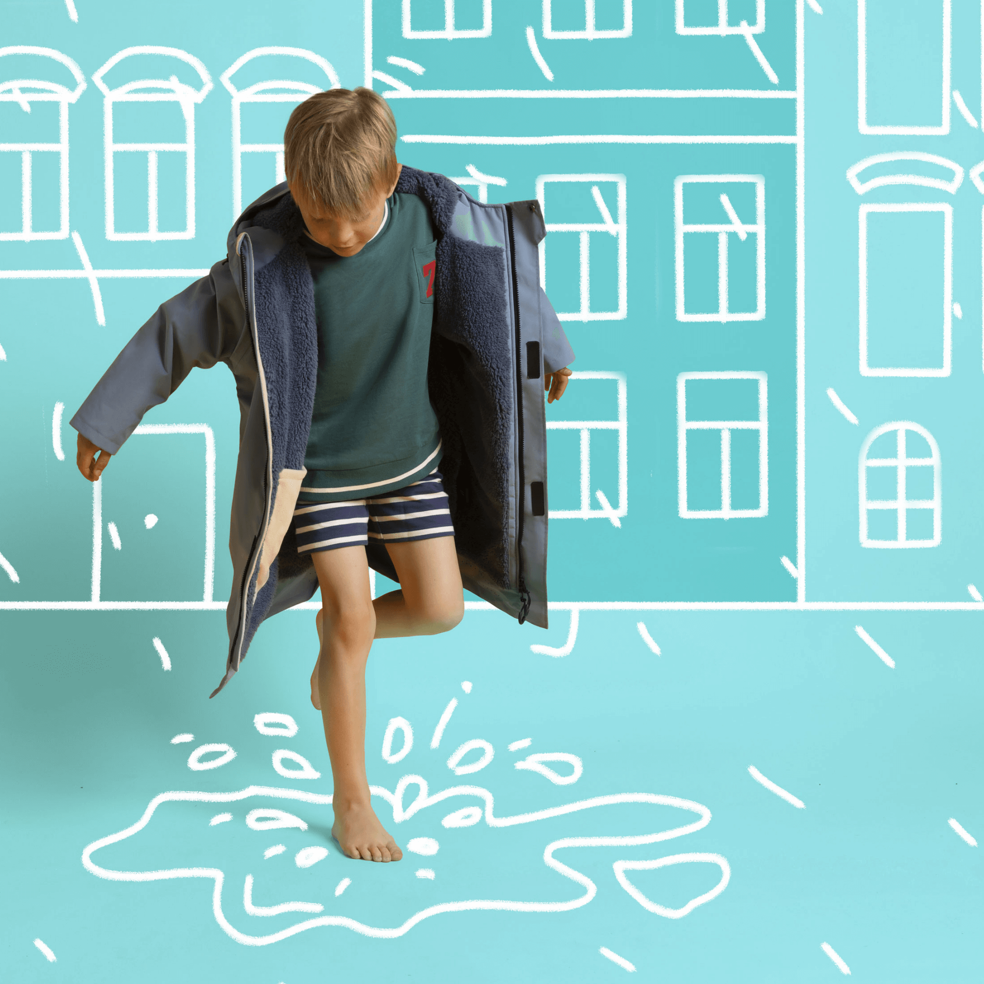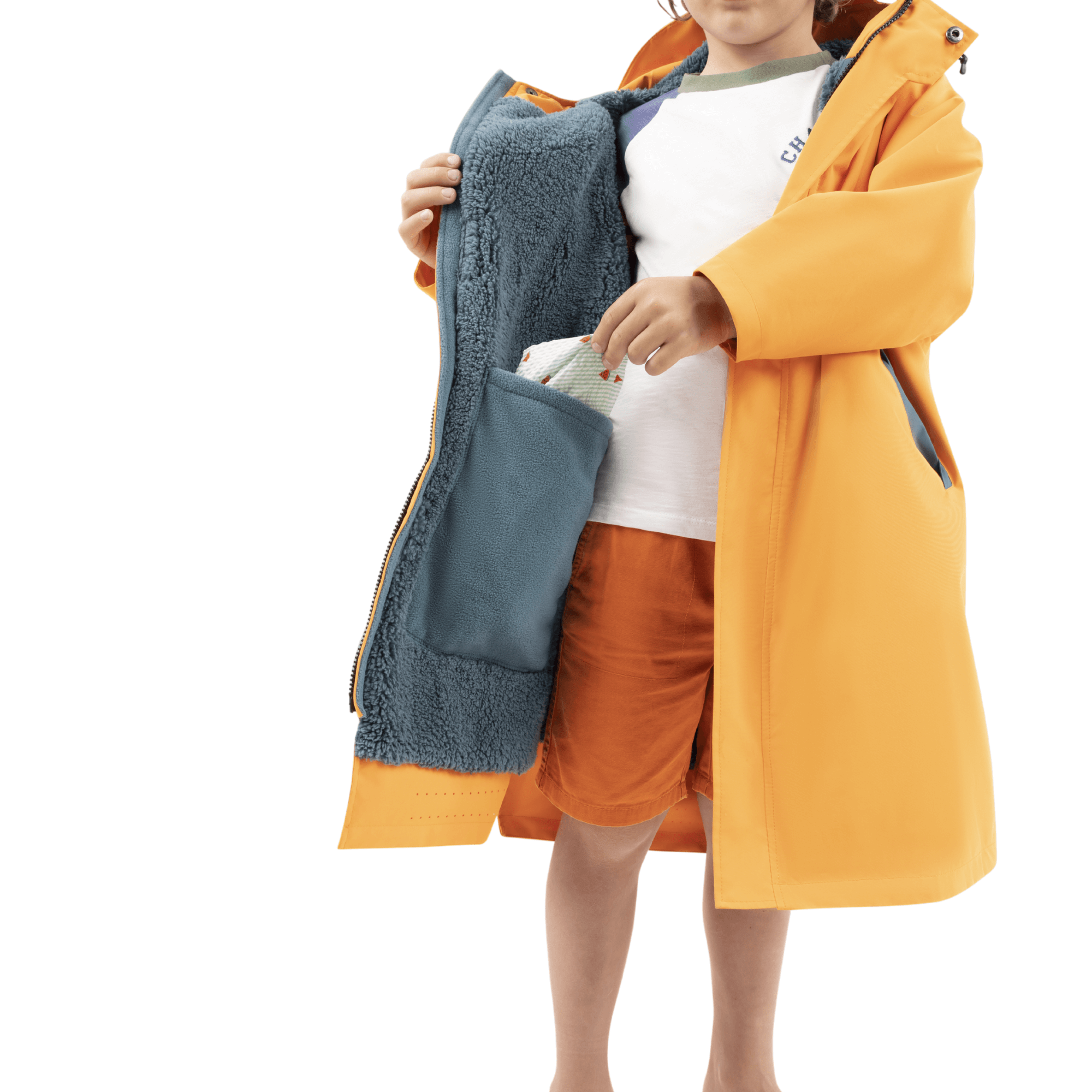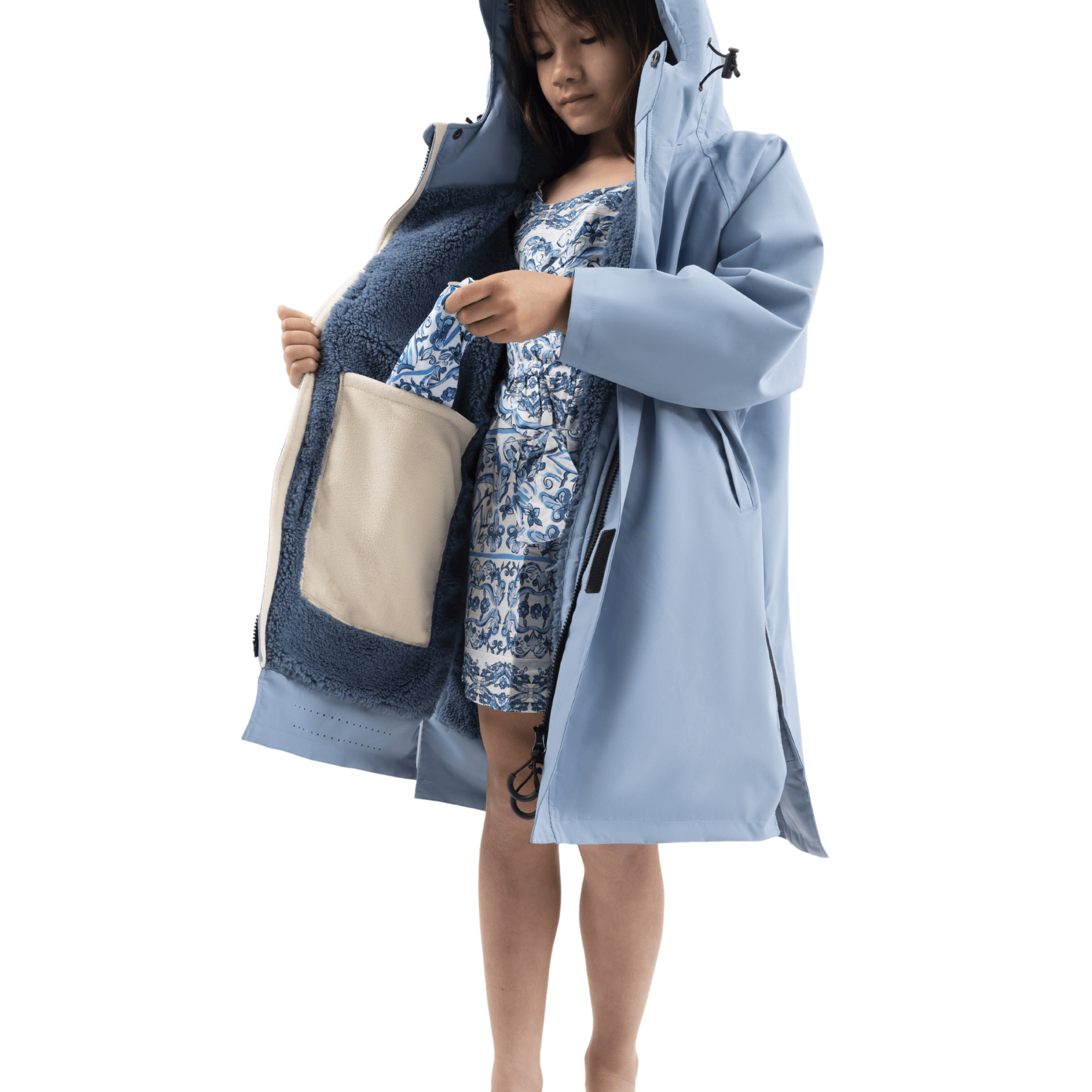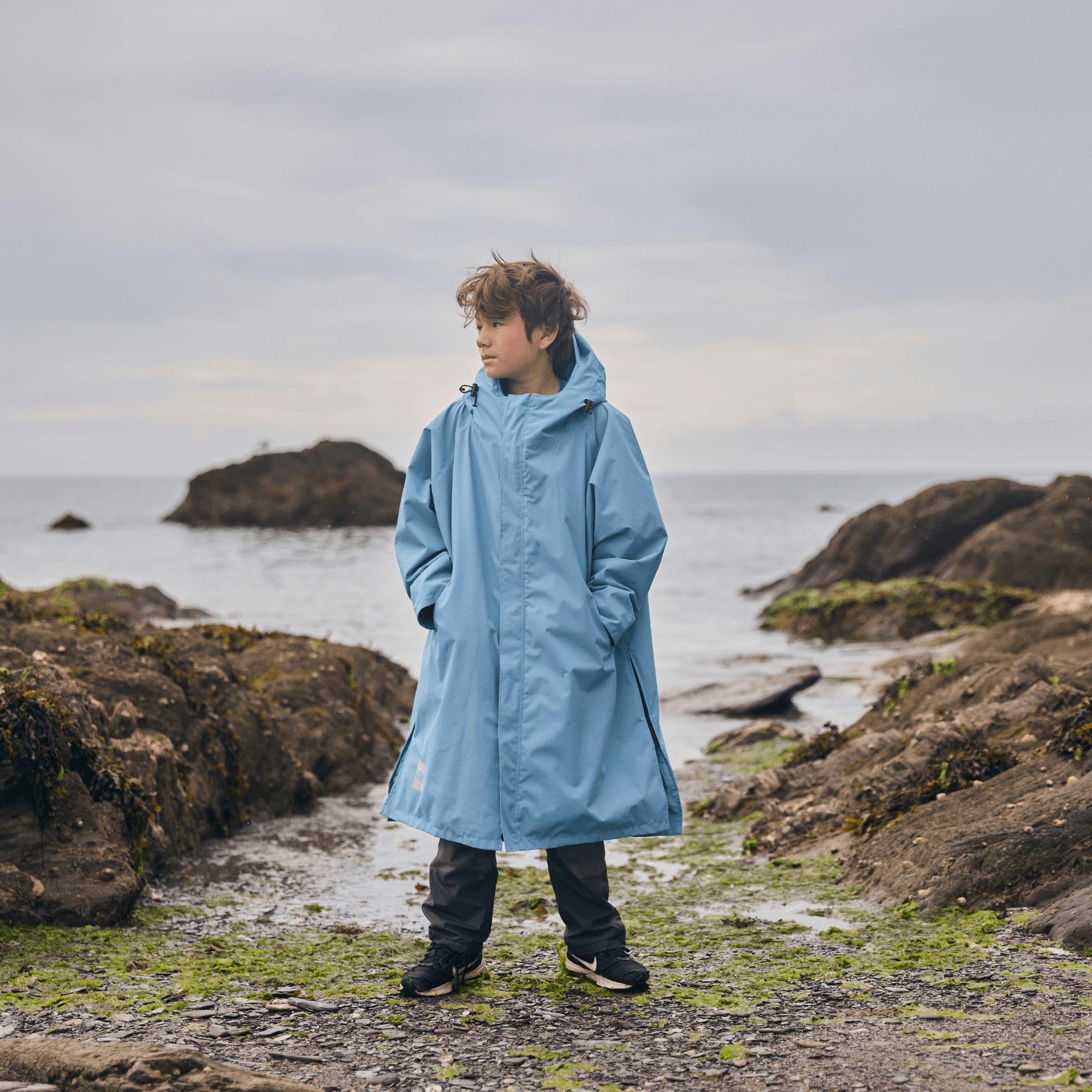 Highly rated 15k waterproof / 8k breathable, the kids waterproof changing robe shrugs off rain – with a peaked, adjustable hood for full coverage. The super-soft, sensory-friendly fleece lining keeps kids cosy. Ready to tackle the great outdoors with elasticated roll-up cuffs for warmth and a roomy fit that allows them to grow.