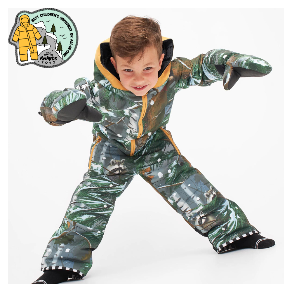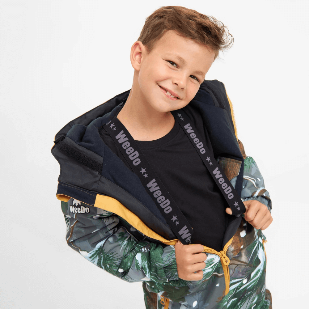 The Cosmo Woods is a perfect choice for any camouflage crazy kid. A beautiful winter forest where you can explore, be curious, play and never be spotted. In your cosy camouflage suit you can be anything and do anything. Something serious for the adults; these Snowsuits are packed full of practical features; an innovative grow-system which allows the fit to be adjusted as your child grows; robust, impact resistant zones around the knees, elbows and bottom; fully spec’d helmet compatible hood; read on for more features. WeeDo have thought of everything including the planet.